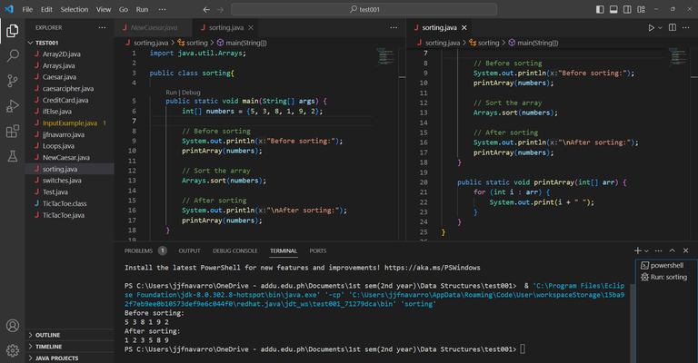 Sorting in Java example: