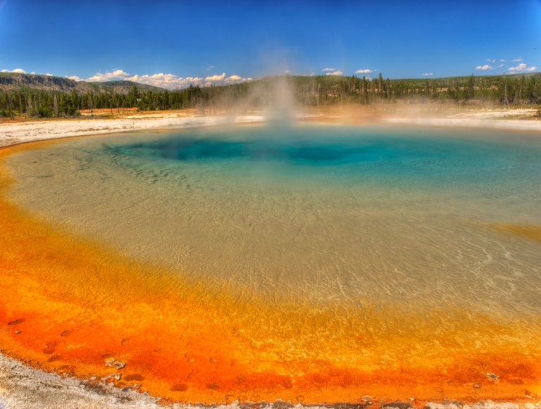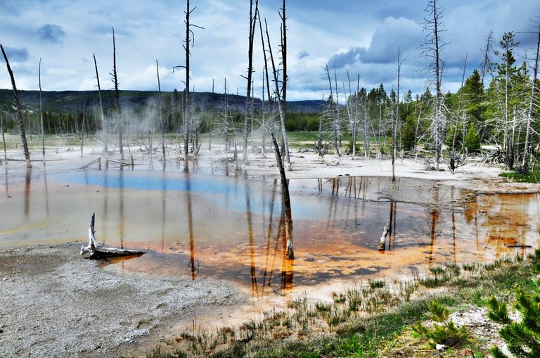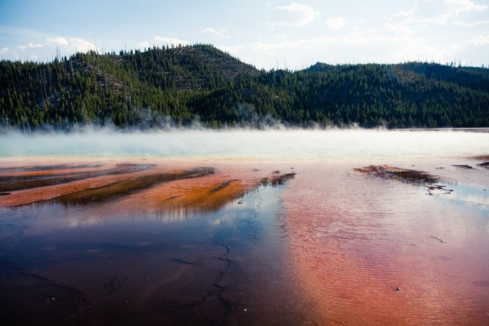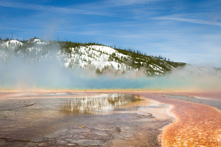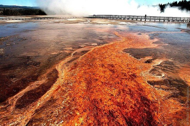 Yellowstone is known primarily riot of colors. Here you can find the most unexpected combination of colors - so bright that, looking at pictures, it's hard to believe that they have no basis in photoshop! The color of the "answer" germs and bacteria that thrive in hot water. As it is written on the signs in the Park, scientists still studied, God forbid, only one percent of microorganisms living at high temperatures: 50 to 90 degrees. Interesting thing learned: it turns out that fish do not live in water at a temperature of over 38 degrees, plants – over 45 insects – more than 60. And bacteria all on the drum.