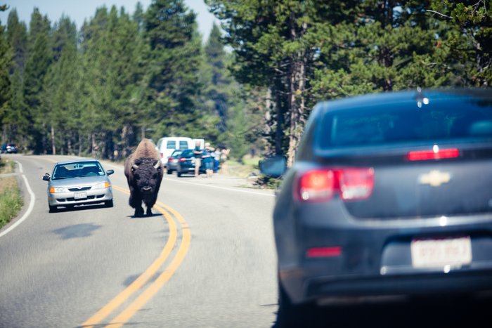 Secondly, it is very difficult to plan the time that will take to get from point a to point B, because in Yellowstone are occasional traffic jams. The most common cause of the congestion be a bison crossing the road.